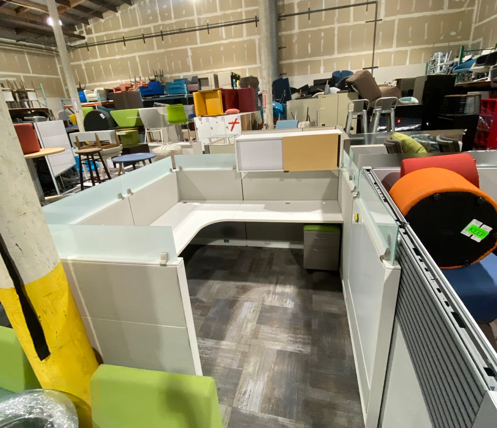 $2,000.00$750.00 63% off7′ x 7′ Allsteel cubicle with glass and overhead